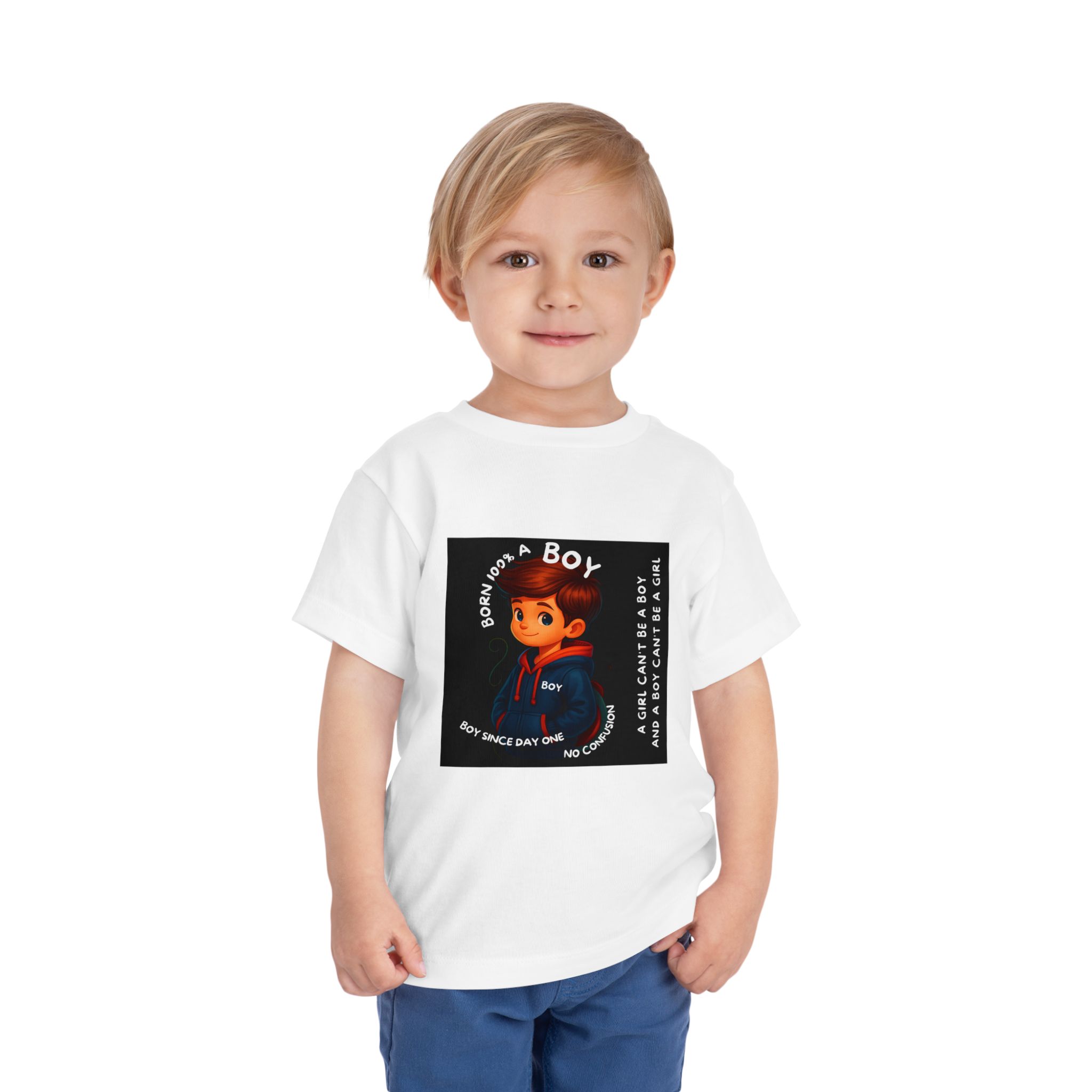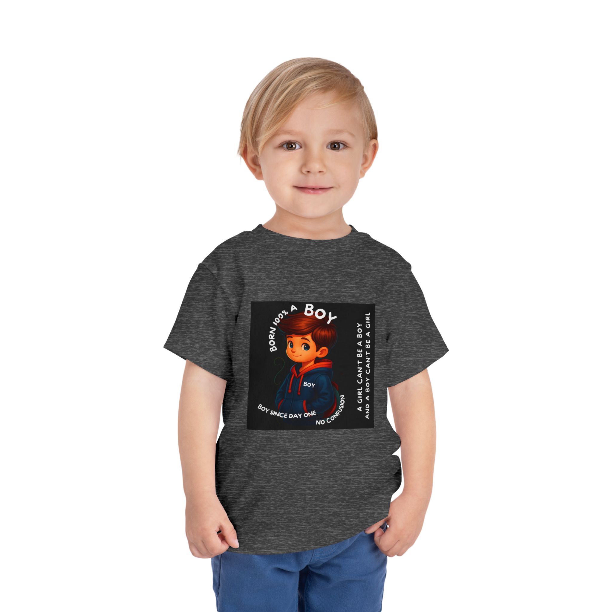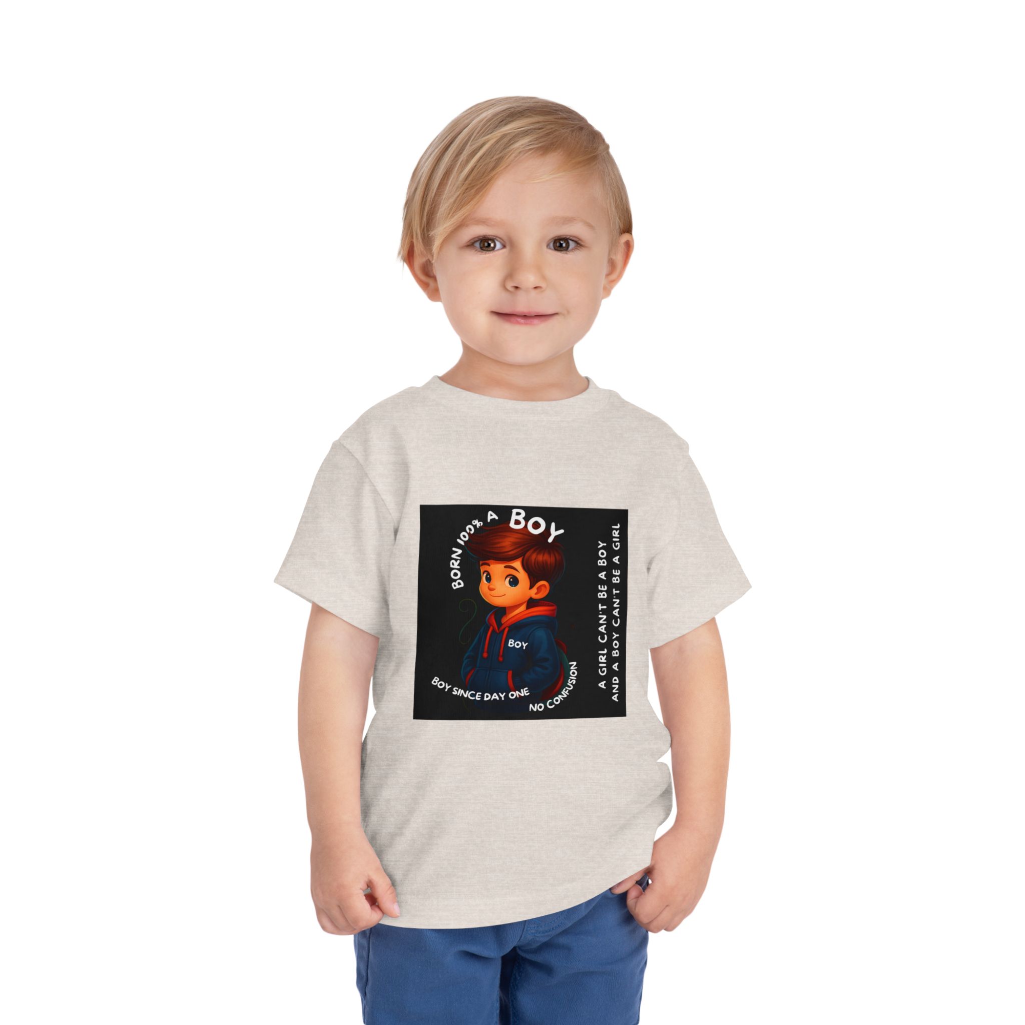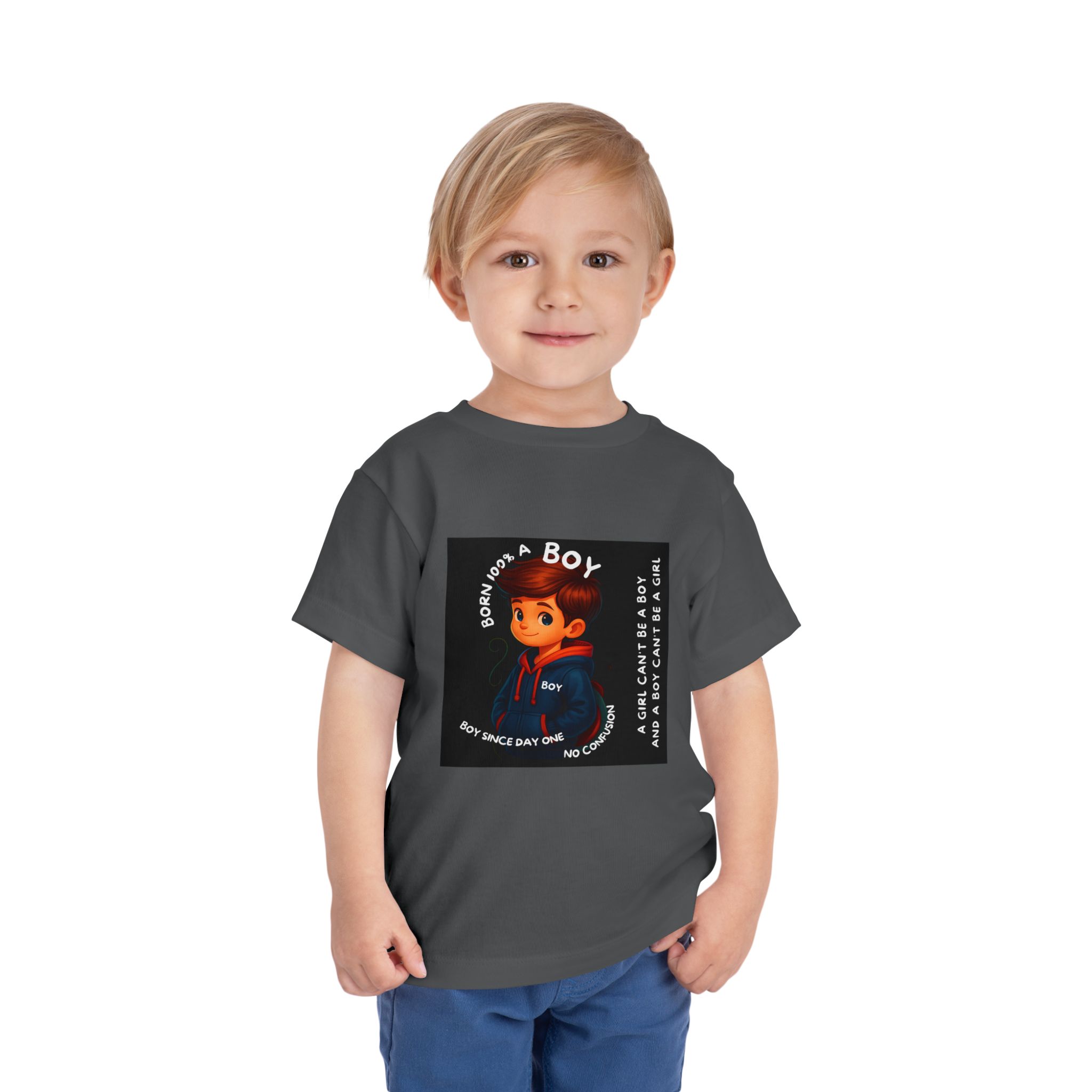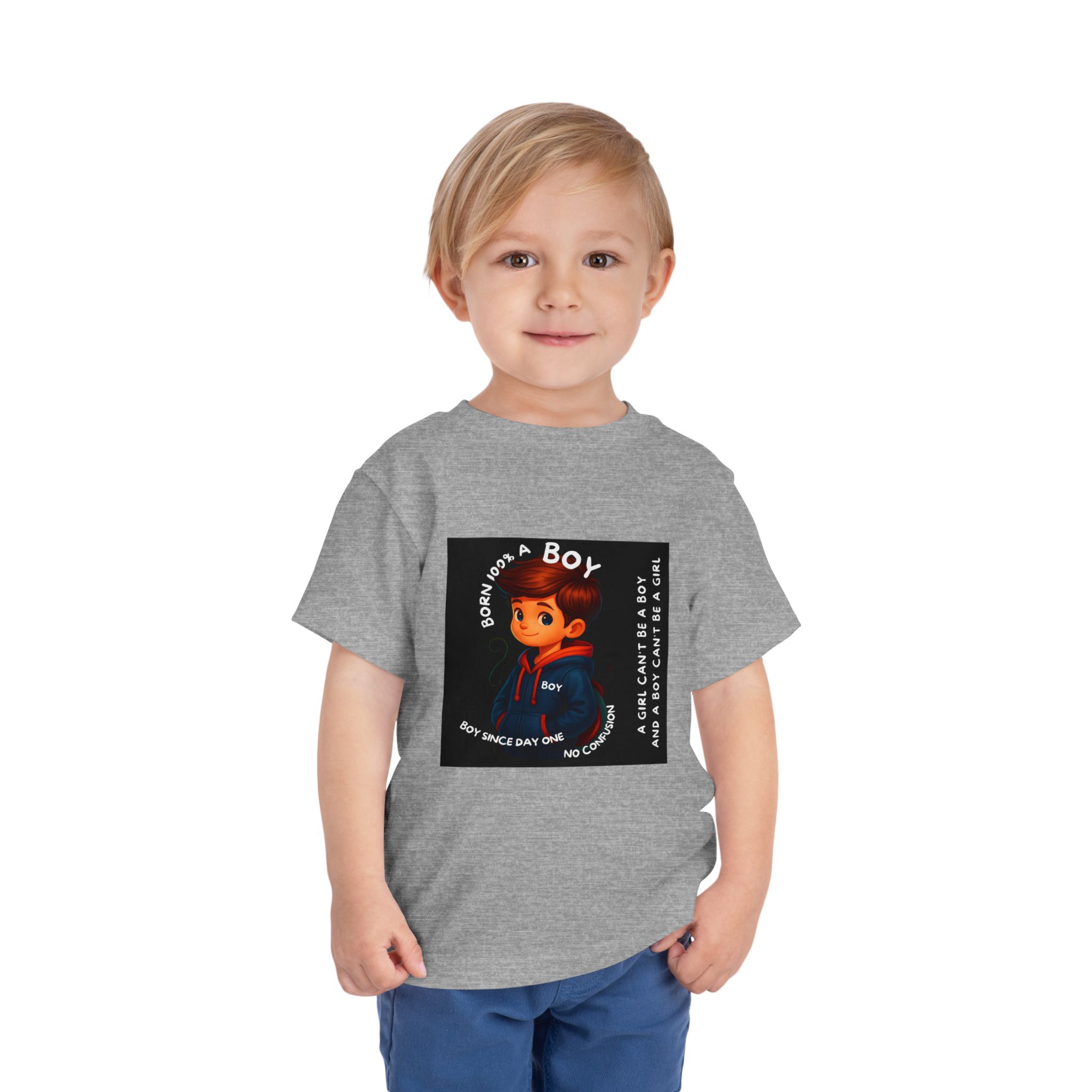 Boy Toddler Tee: Celebrate Identity with Girl is not a Boy and Boy is not a Girl design. Introducing our delightful Toddler Short Sleeve Tee, designed for the playful spirit in every little one. This charming tee combines comfort and fun with its light, airy fabric, perfect for keeping your child cool during playdates and outdoor adventures. The colorful design brings joy and creativity, making it an ideal choice for every day or special occasions like birthdays and family gatherings. It resonates with parents who value individuality, fostering self-expression in young ones. Crafted from soft cotton, this tee is gentle on sensitive skin and perfect for boys and girls alike. Celebrate childhood with this vibrant addition to their wardrobe! Product features – Side seams provide structural integrity and shape. – Soft fiber composition for maximum comfort. – Lightweight fabric designed for active play. – Tear-away label for a fuss-free experience. – Perfect for everyday wear and special occasions. Care instructions – Machine wash: cold (max 30C or 90F) – Do not bleach – Tumble dry: low heat – Iron, steam or dry: low heat – Do not dry clean