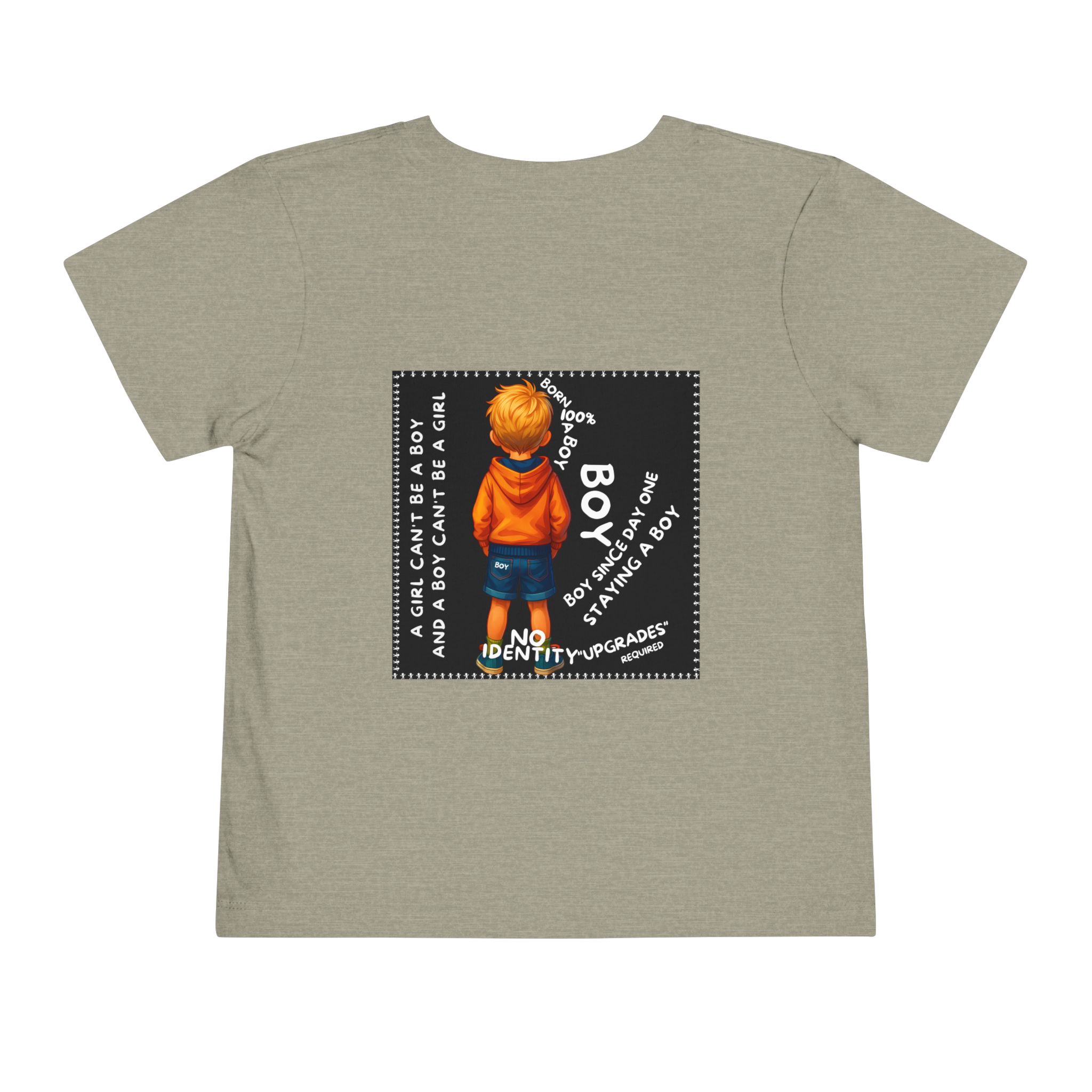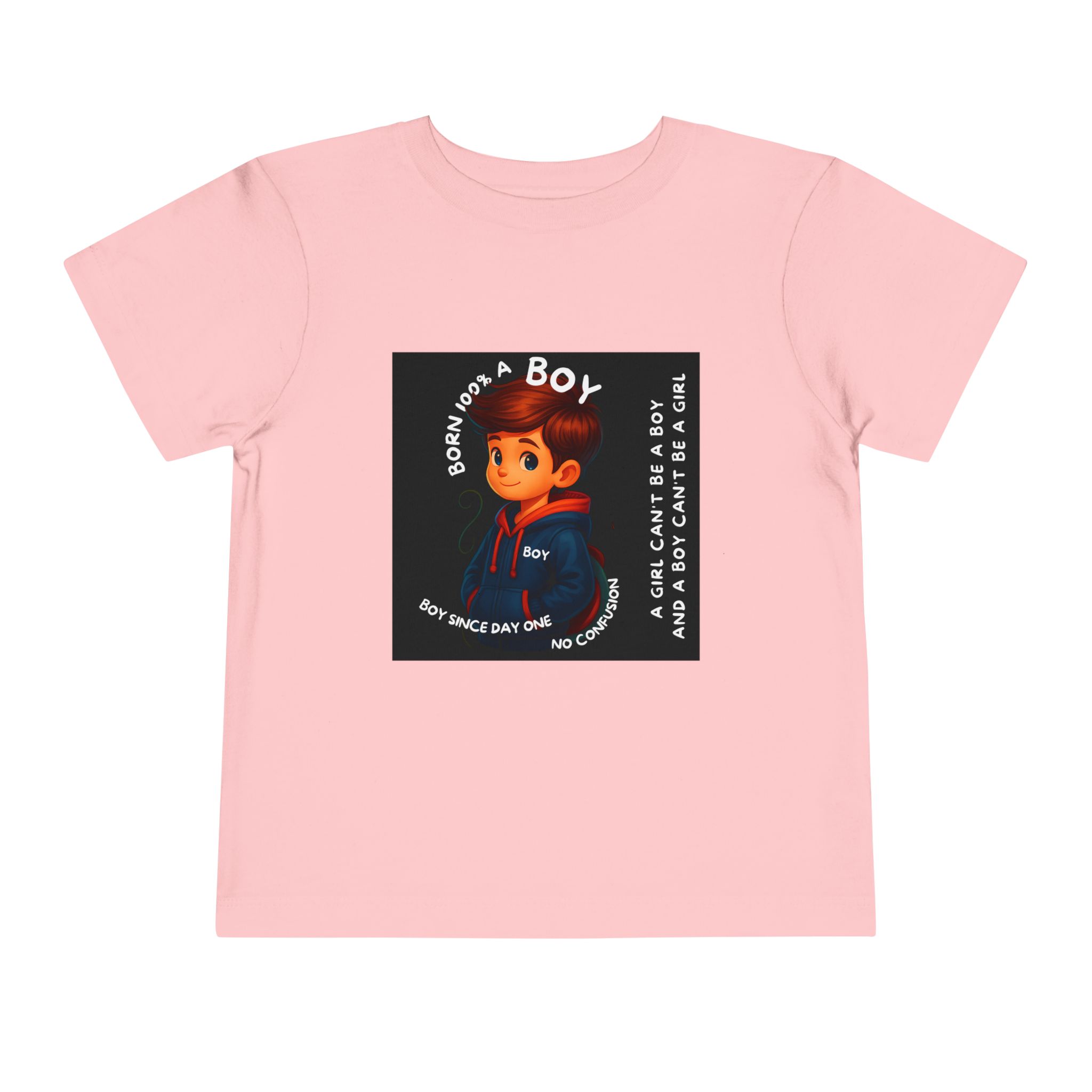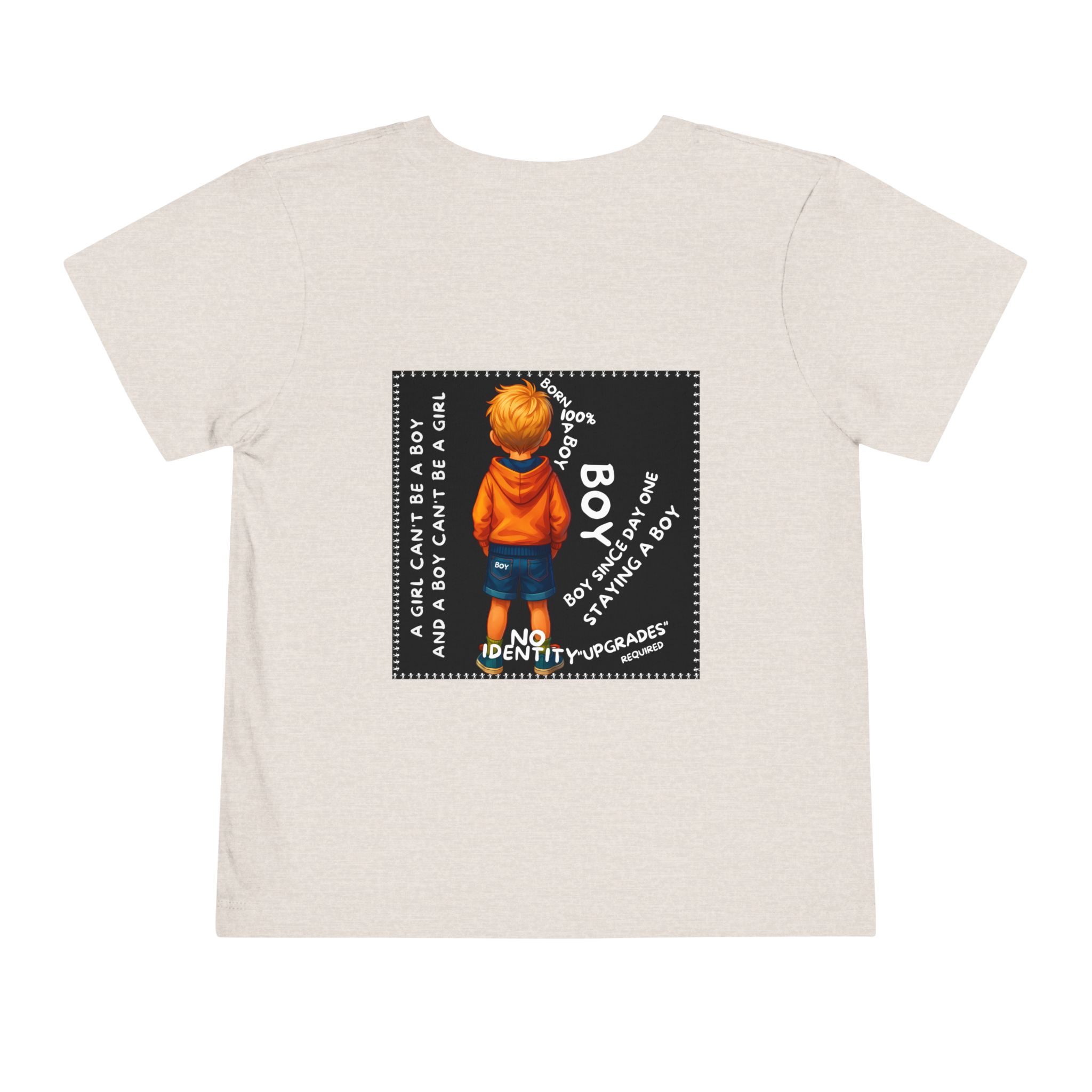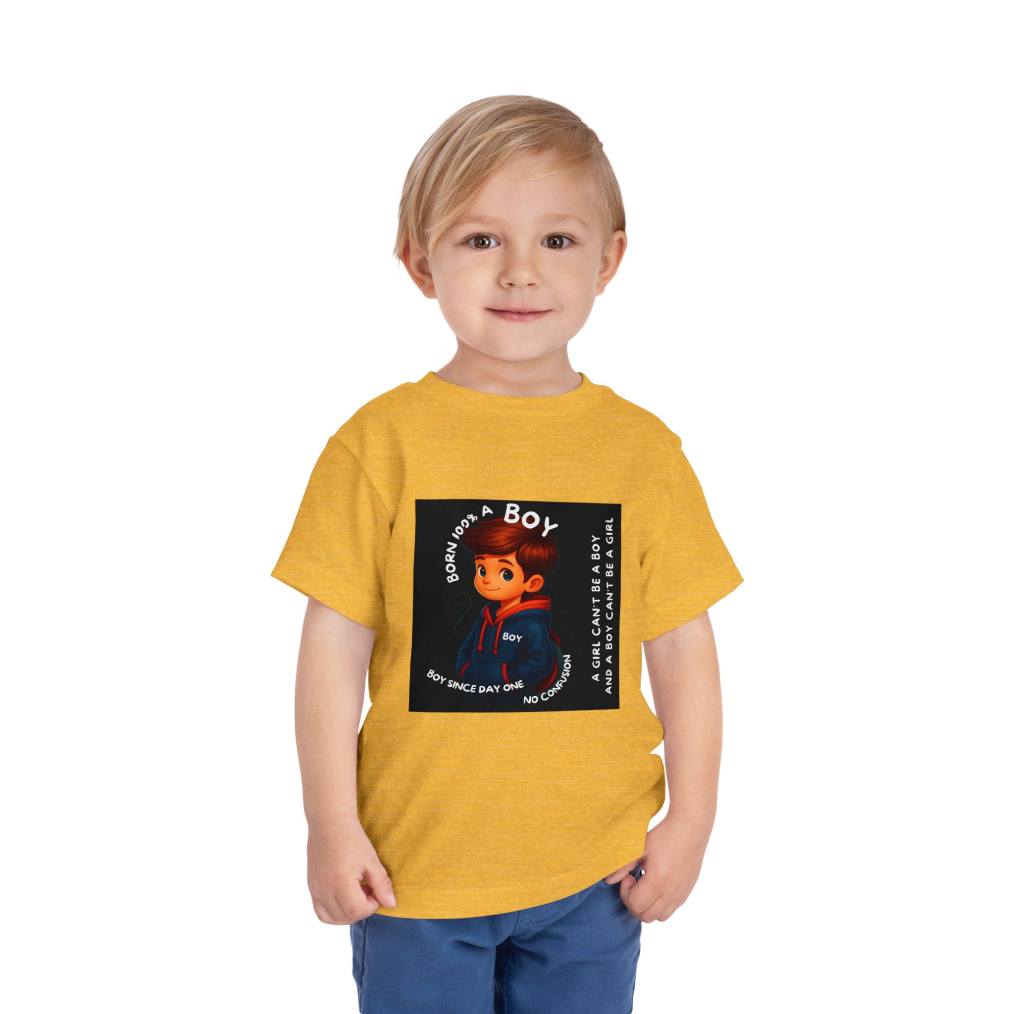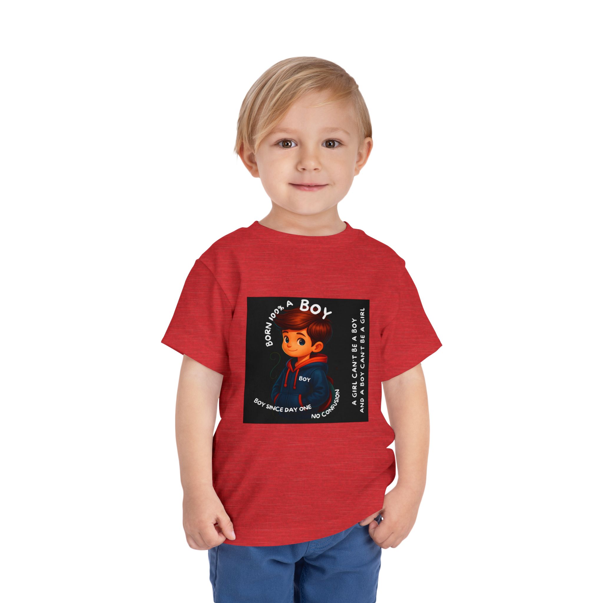 Boy Toddler Tee: Celebrate Identity with Girl is not a Boy and Boy is not a Girl design. Introducing our delightful Toddler Short Sleeve Tee, designed for the playful spirit in every little one. This charming tee combines comfort and fun with its light, airy fabric, perfect for keeping your child cool during playdates and outdoor adventures. The colorful design brings joy and creativity, making it an ideal choice for every day or special occasions like birthdays and family gatherings. It resonates with parents who value individuality, fostering self-expression in young ones. Crafted from soft cotton, this tee is gentle on sensitive skin and perfect for boys and girls alike. Celebrate childhood with this vibrant addition to their wardrobe! Product features – Side seams provide structural integrity and shape. – Soft fiber composition for maximum comfort. – Lightweight fabric designed for active play. – Tear-away label for a fuss-free experience. – Perfect for everyday wear and special occasions. Care instructions – Machine wash: cold (max 30C or 90F) – Do not bleach – Tumble dry: low heat – Iron, steam or dry: low heat – Do not dry clean