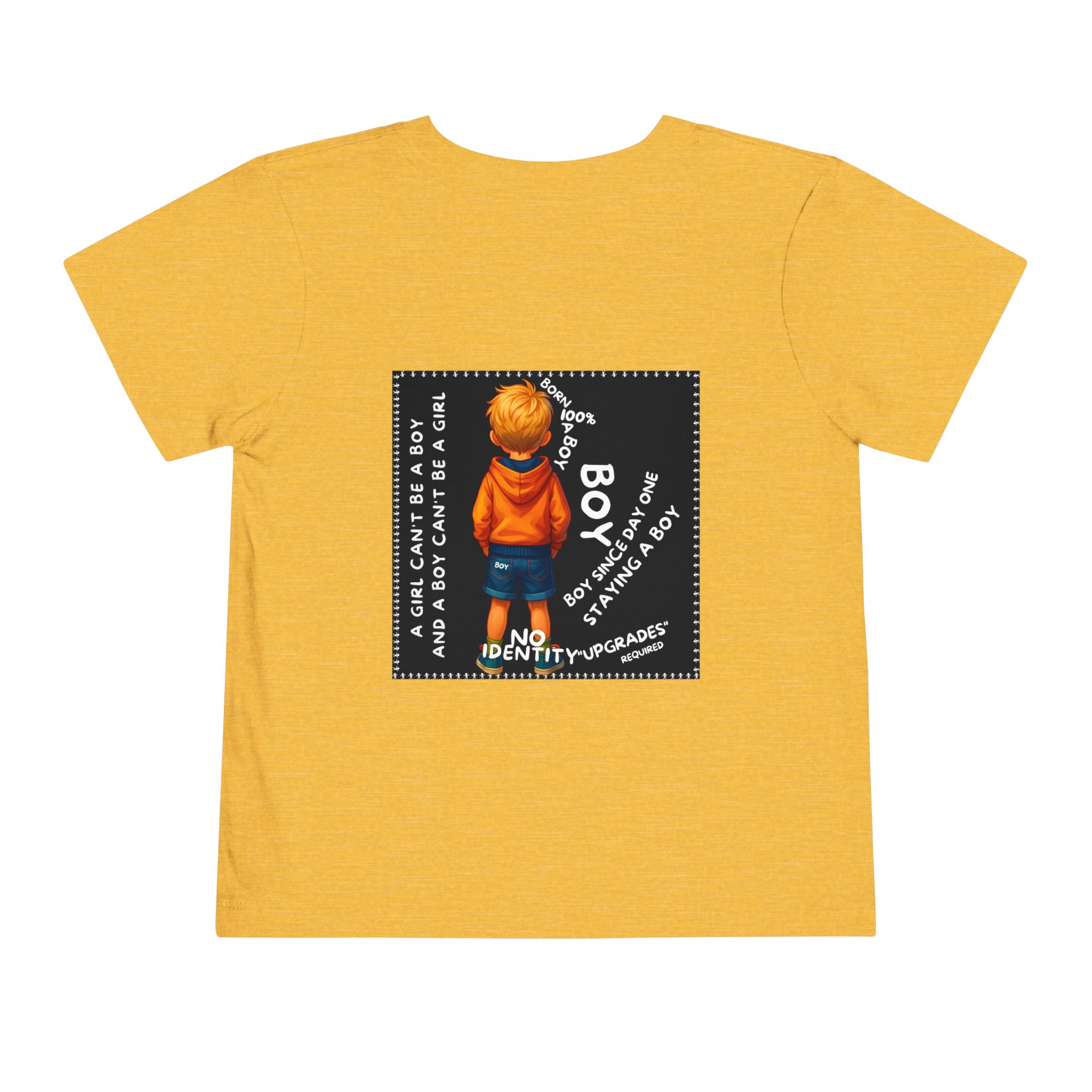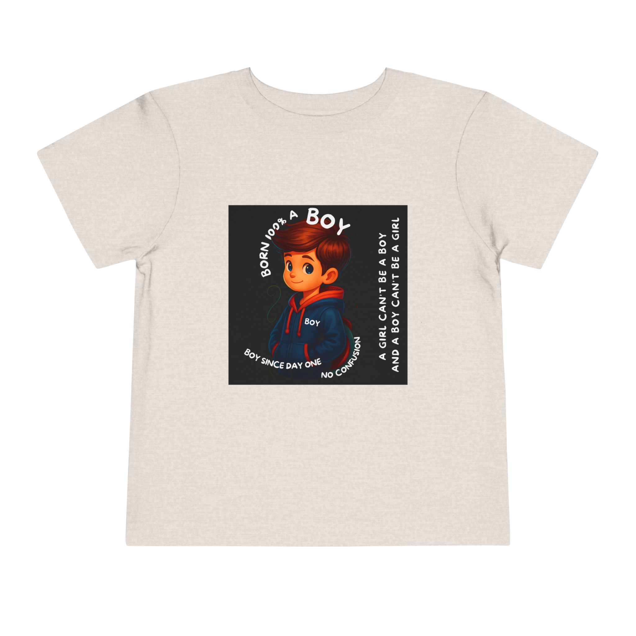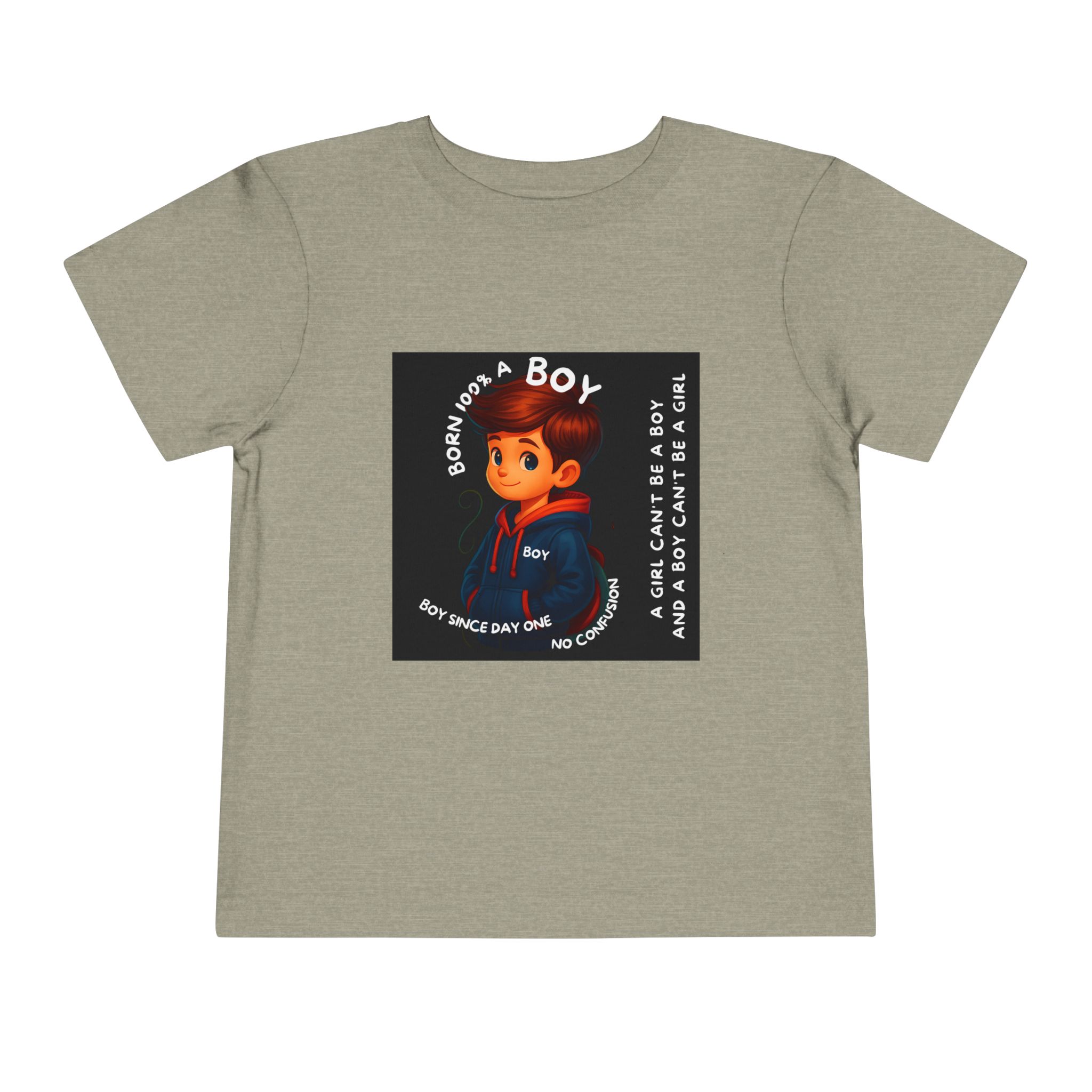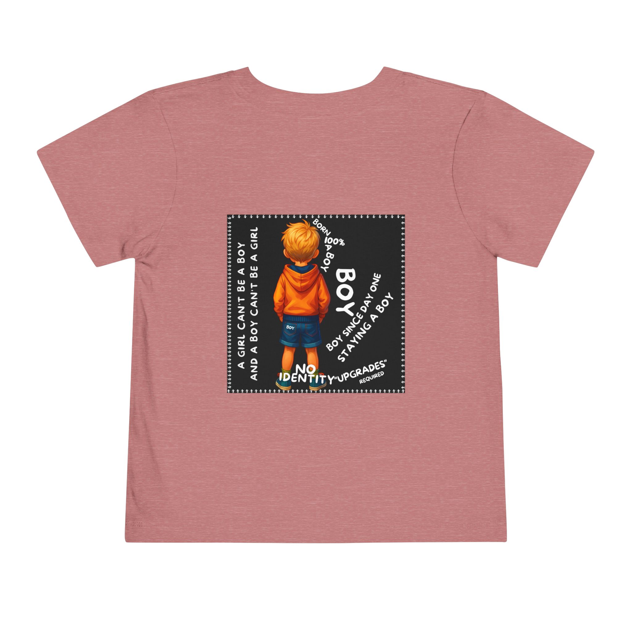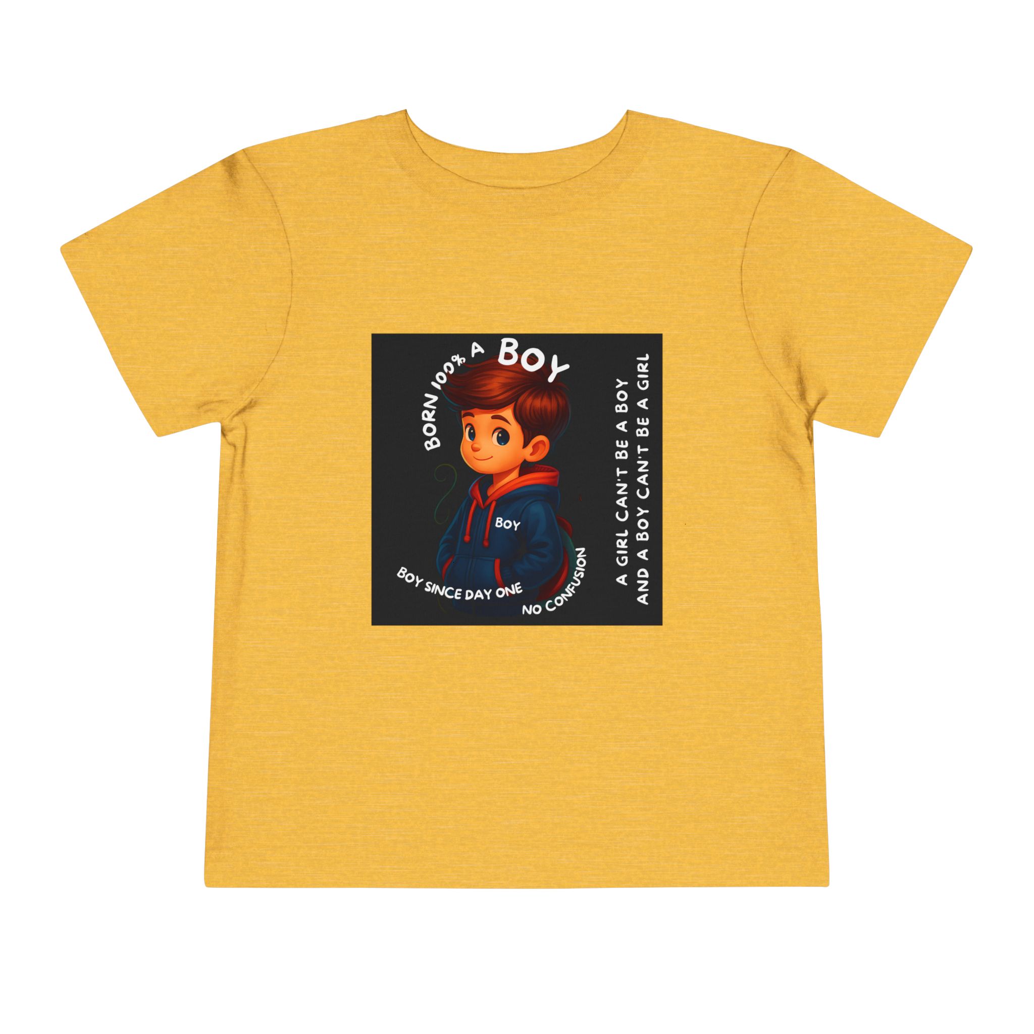 Boy Toddler Tee: Celebrate Identity with Girl is not a Boy and Boy is not a Girl design. Introducing our delightful Toddler Short Sleeve Tee, designed for the playful spirit in every little one. This charming tee combines comfort and fun with its light, airy fabric, perfect for keeping your child cool during playdates and outdoor adventures. The colorful design brings joy and creativity, making it an ideal choice for every day or special occasions like birthdays and family gatherings. It resonates with parents who value individuality, fostering self-expression in young ones. Crafted from soft cotton, this tee is gentle on sensitive skin and perfect for boys and girls alike. Celebrate childhood with this vibrant addition to their wardrobe! Product features – Side seams provide structural integrity and shape. – Soft fiber composition for maximum comfort. – Lightweight fabric designed for active play. – Tear-away label for a fuss-free experience. – Perfect for everyday wear and special occasions. Care instructions – Machine wash: cold (max 30C or 90F) – Do not bleach – Tumble dry: low heat – Iron, steam or dry: low heat – Do not dry clean