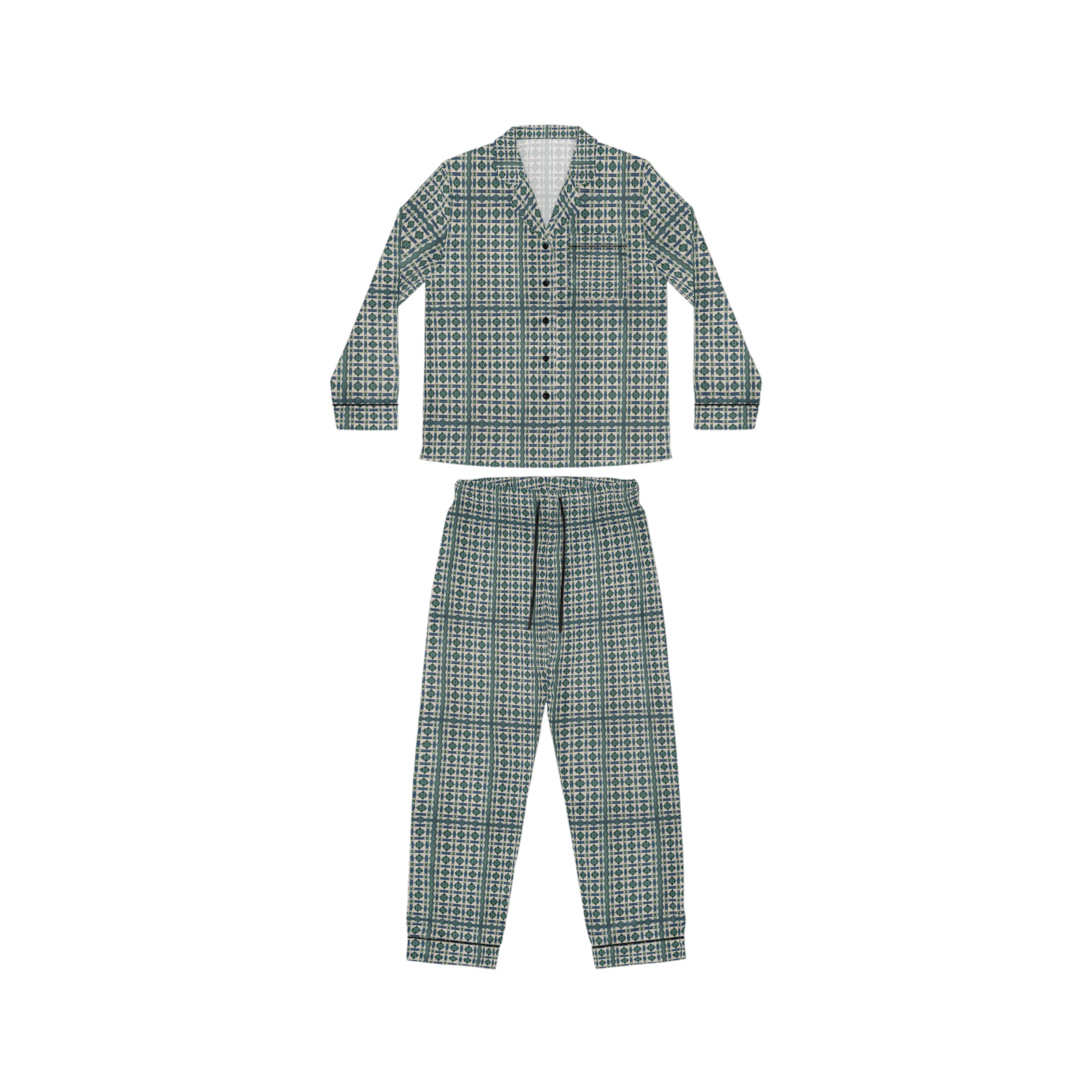 Dark Green Pattern Women’s Satin Pajamas (HLPJ0047)