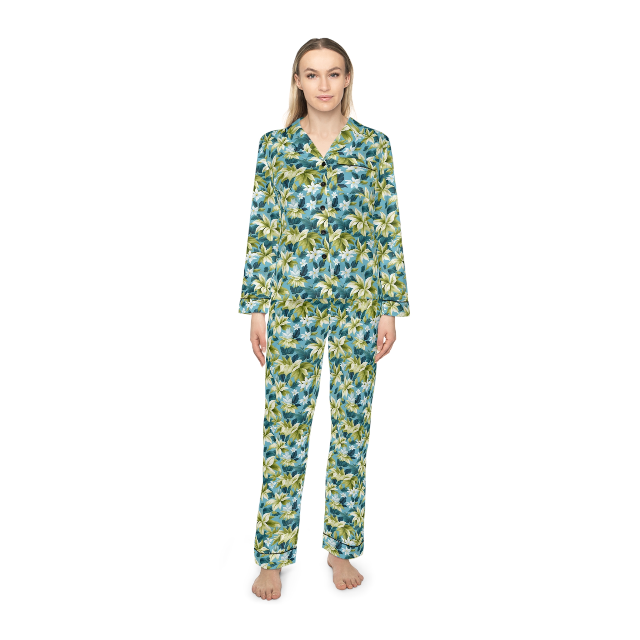 Experience unmatched comfort and elevated design with Hampton Laze designer pyjamas (also known as pajamas). Crafted from a premium satin blend of 95% polyester and 5% spandex, these limited-edition sets feel luxuriously smooth against the skin. Each set features a refined notch lapel collar, black trim details, and a drawstring waist for a tailored yet relaxed fit. Every design is exclusive to Hampton Laze — bold, timeless, and never mass-produced. Perfect for women who value originality, softness, and style, whether lounging or traveling.