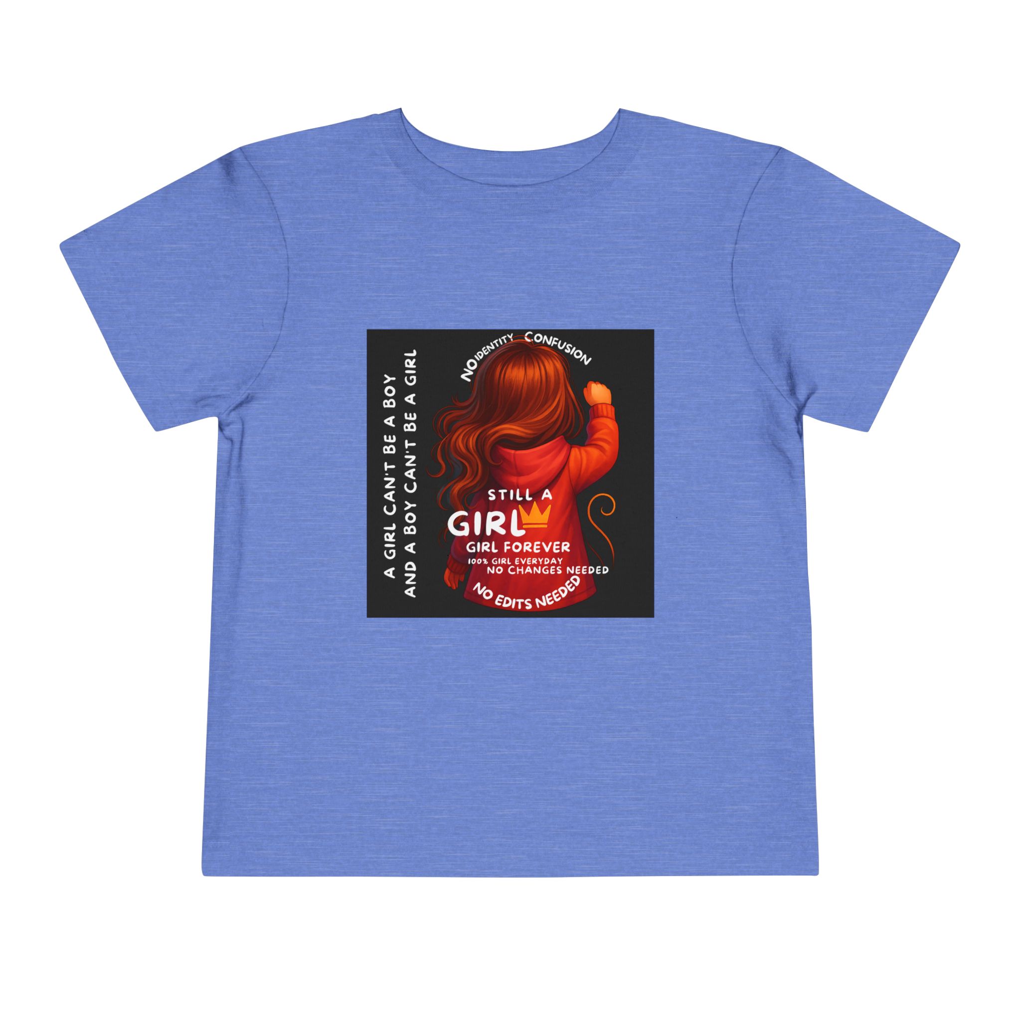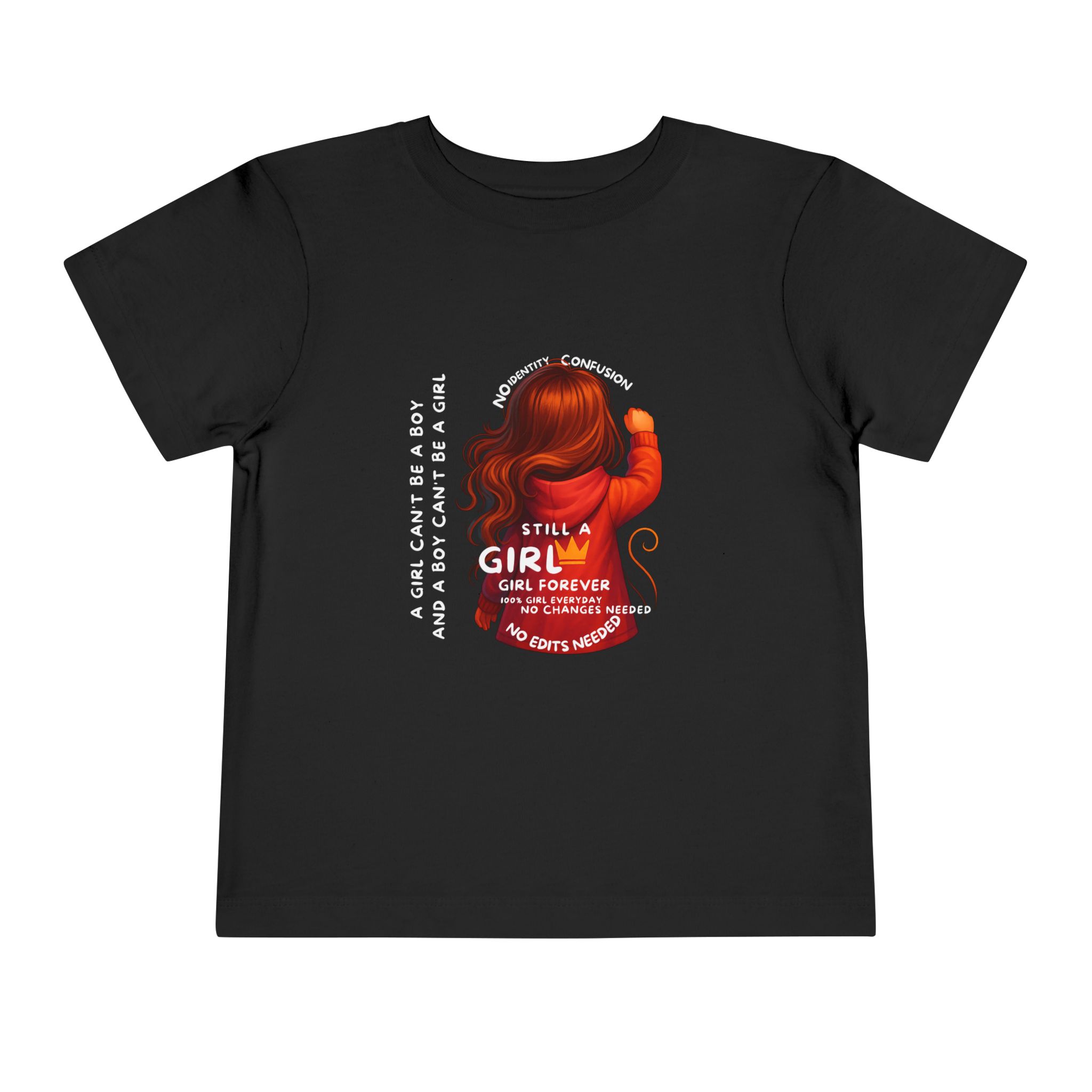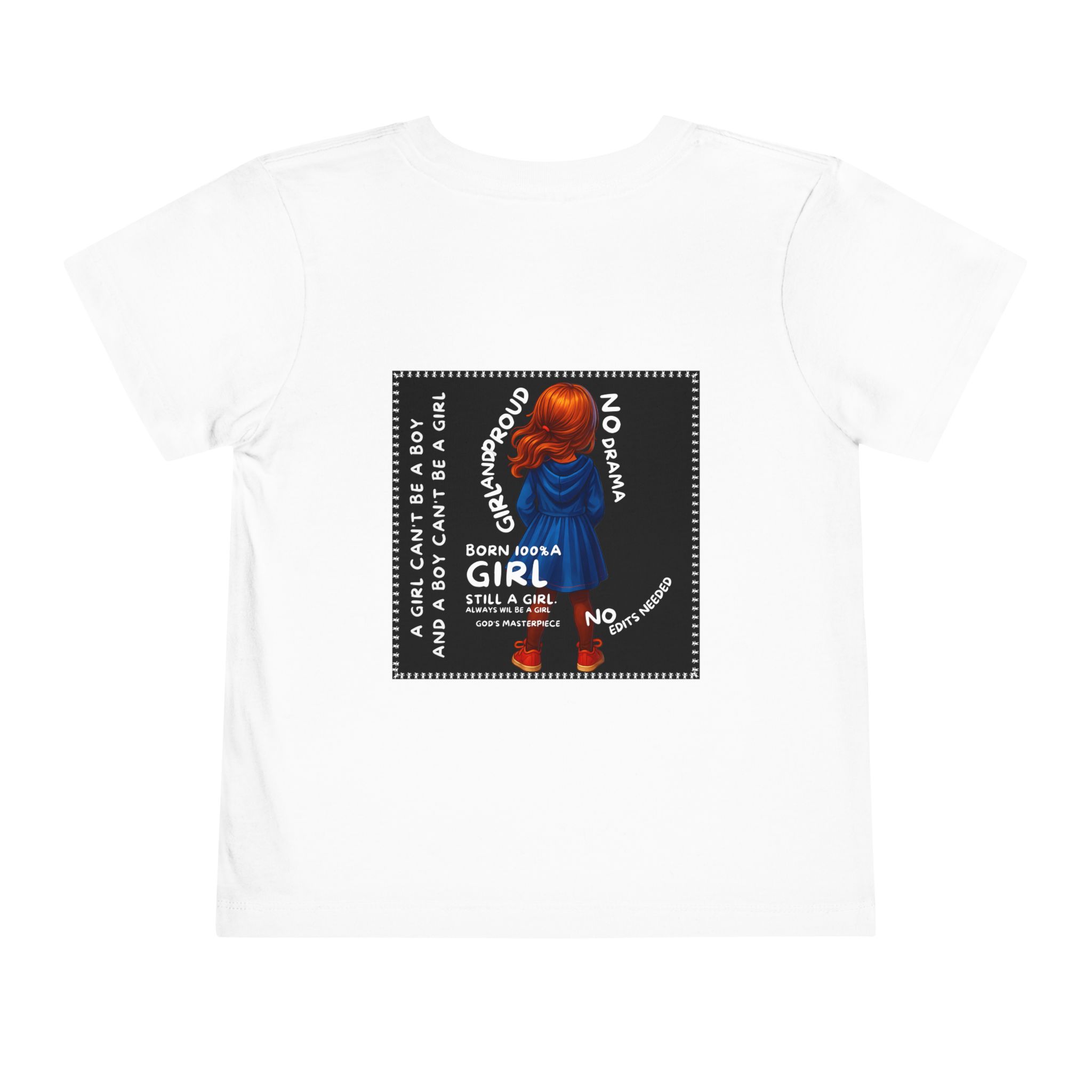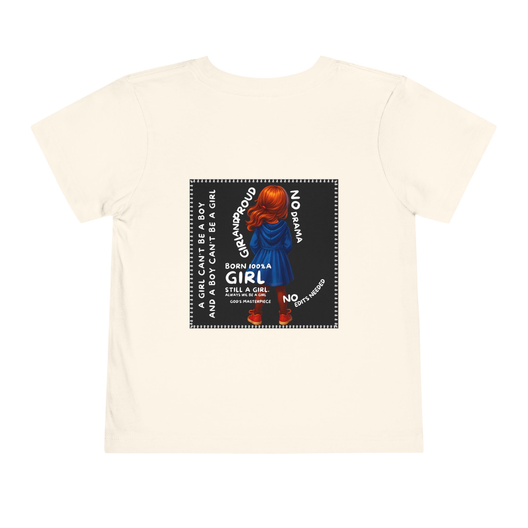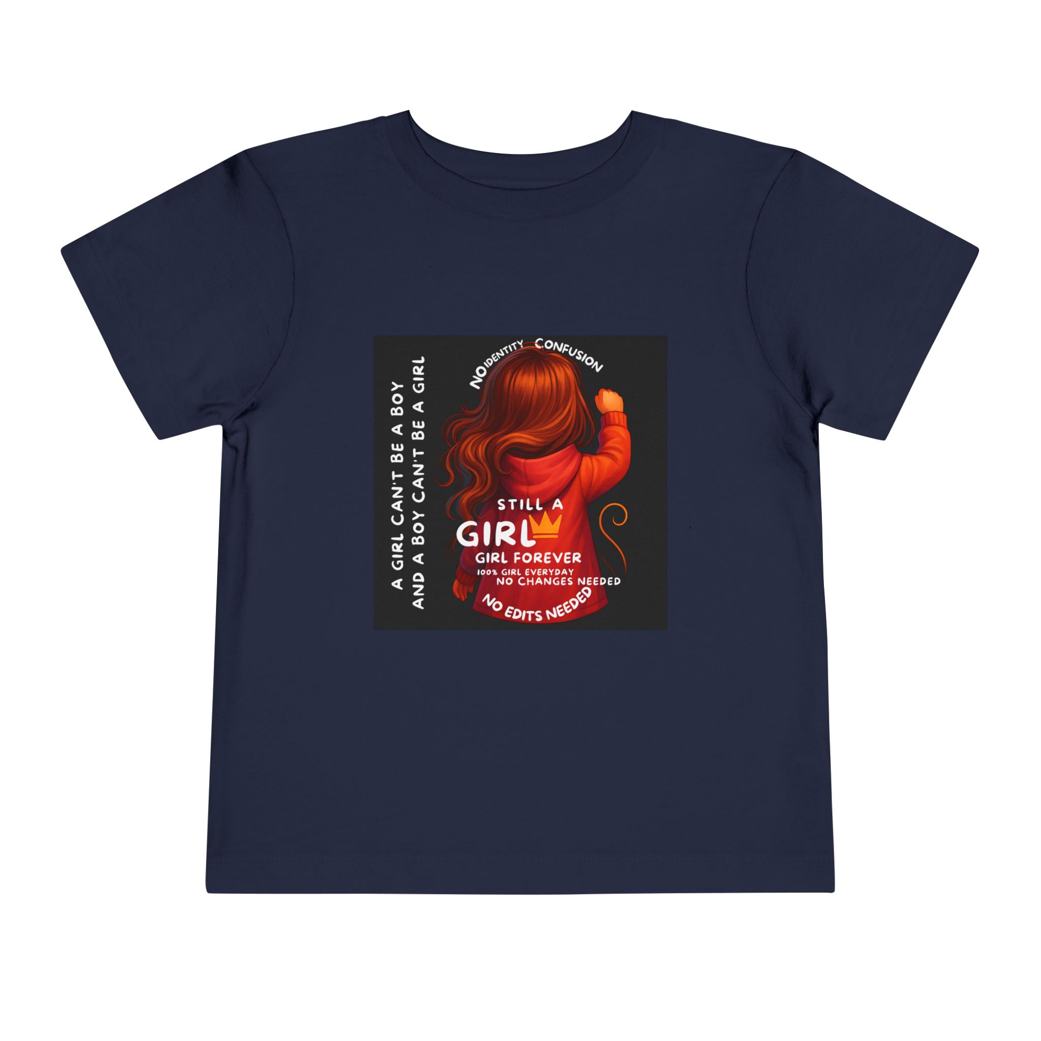 Girl Toddler Tee: Celebrate Identity with Girl is not a Boy and Boy is not a Girl design. Introducing our delightful Toddler Short Sleeve Tee, designed for the playful spirit in every little one. This charming tee combines comfort and fun with its light, airy fabric, perfect for keeping your child cool during playdates and outdoor adventures. The colorful design brings joy and creativity, making it an ideal choice for every day or special occasions like birthdays and family gatherings. It resonates with parents who value individuality, fostering self-expression in young ones. Crafted from soft cotton, this tee is gentle on sensitive skin and perfect for boys and girls alike. Celebrate childhood with this vibrant addition to their wardrobe! Product features – Side seams provide structural integrity and shape. – Soft fiber composition for maximum comfort. – Lightweight fabric designed for active play. – Tear-away label for a fuss-free experience. – Perfect for everyday wear and special occasions. Care instructions – Machine wash: cold (max 30C or 90F) – Do not bleach – Tumble dry: low heat – Iron, steam or dry: low heat – Do not dry clean