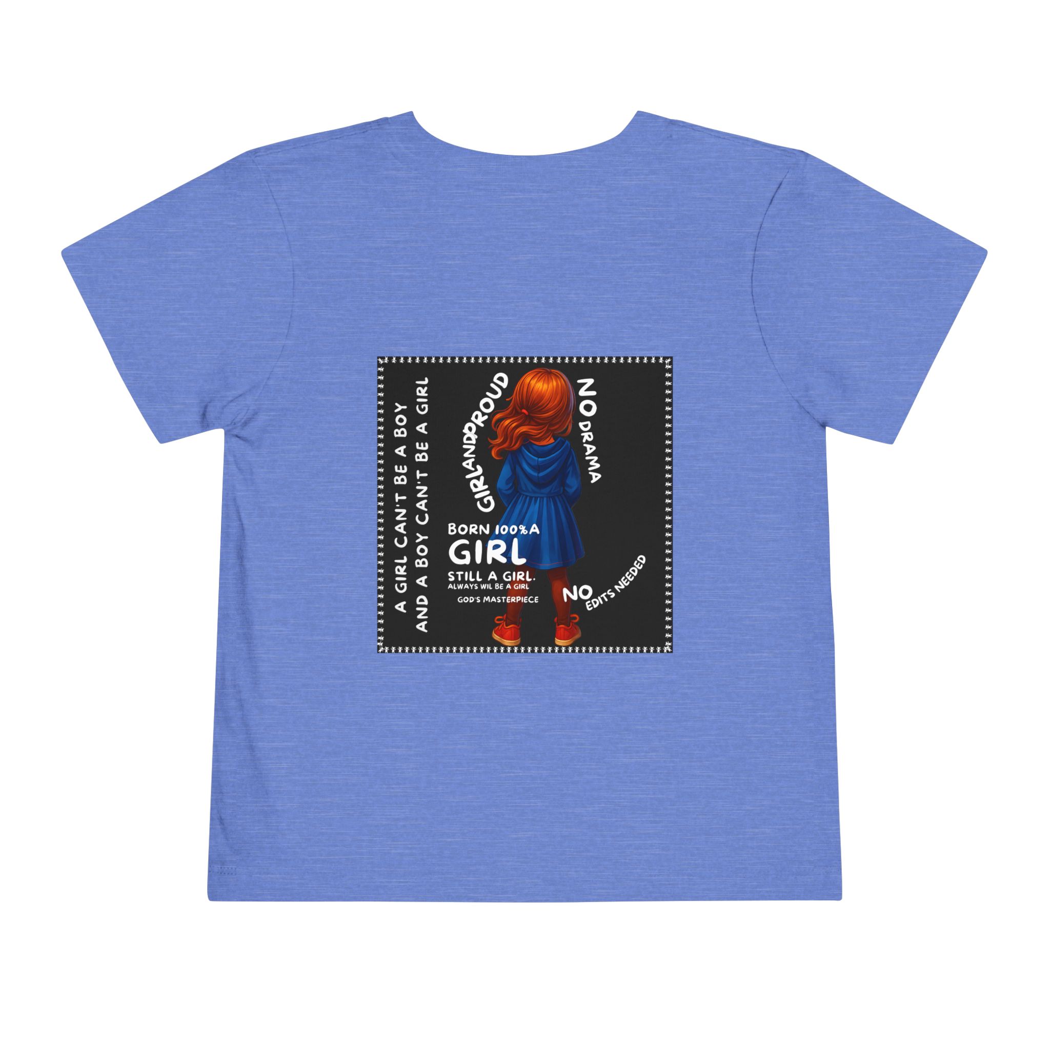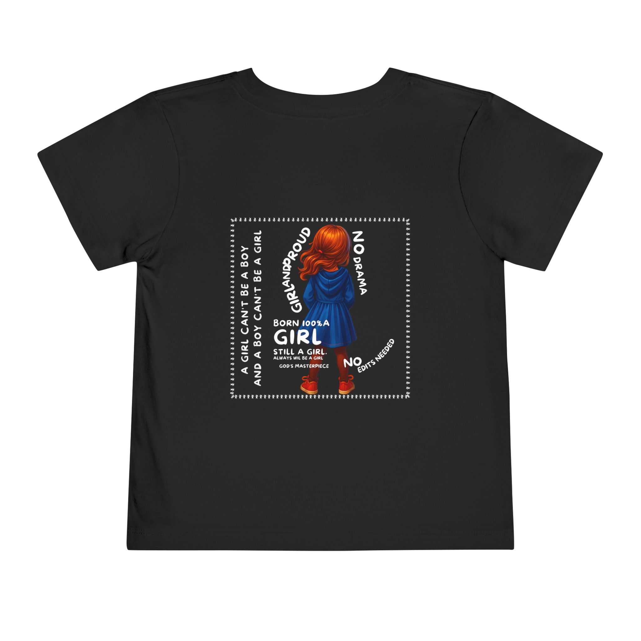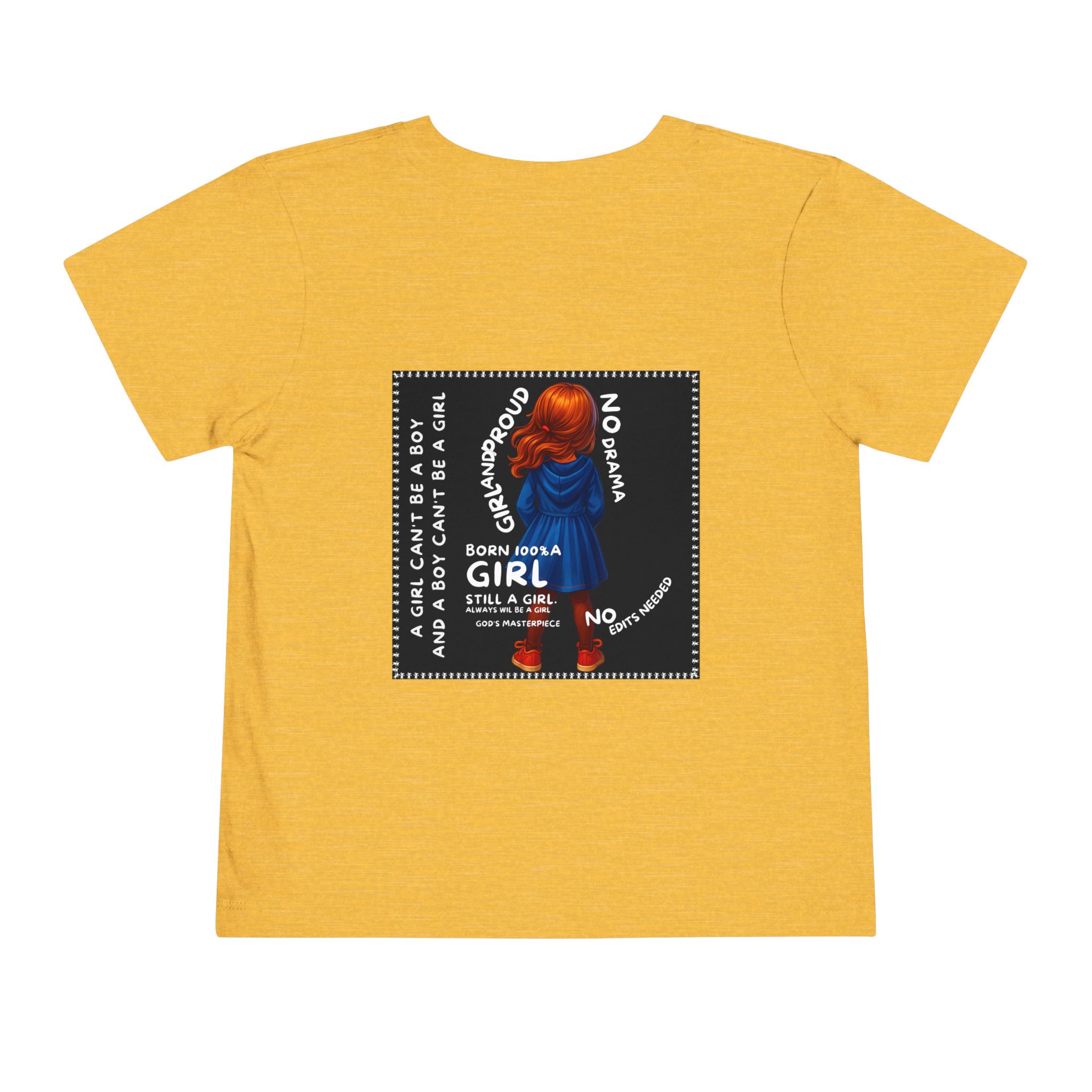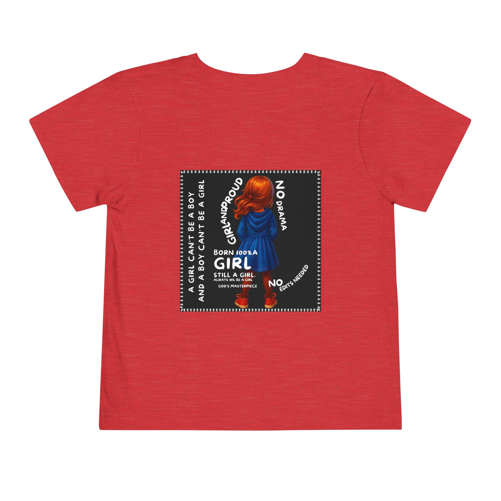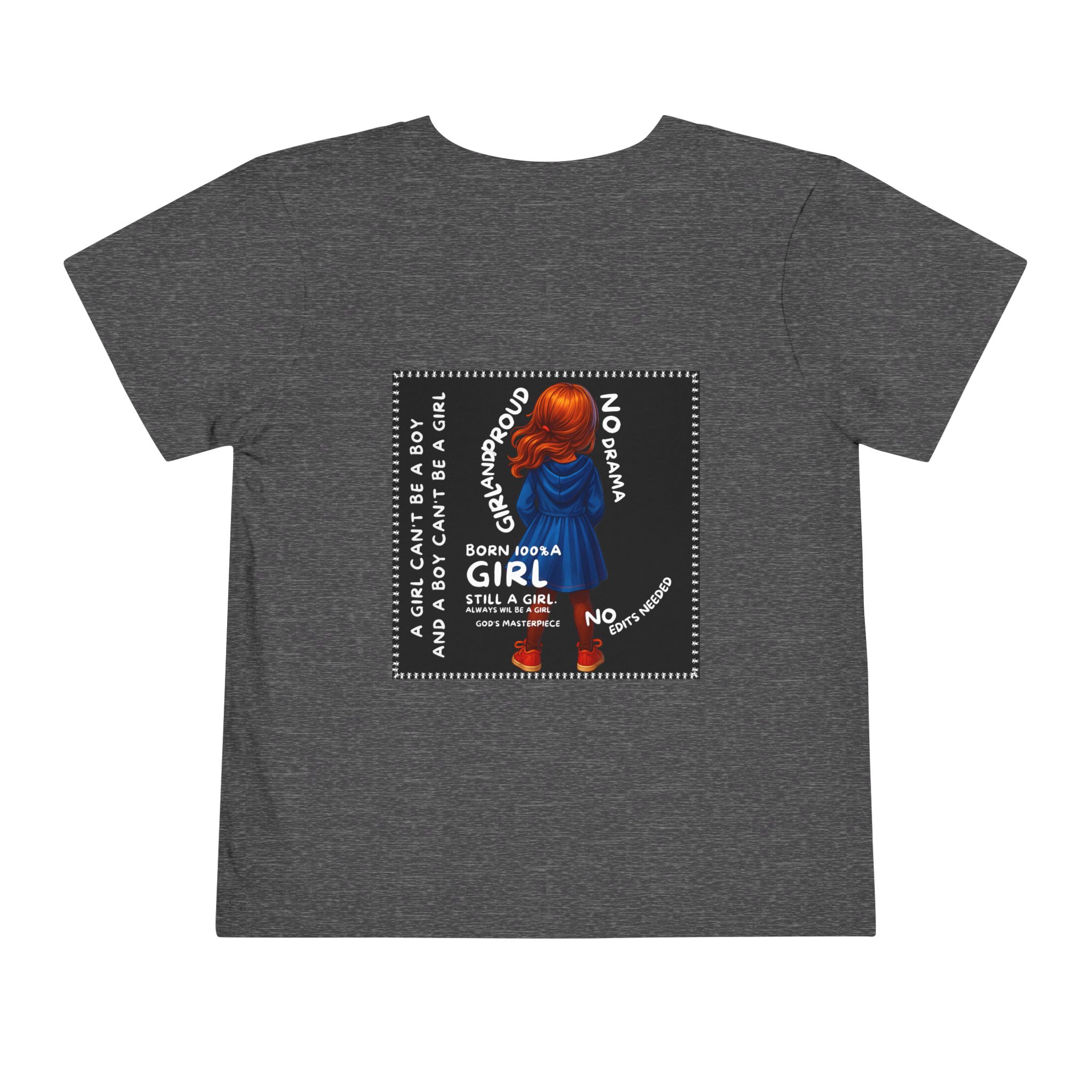Girl Toddler Tee: Celebrate Identity with Girl is not a Boy and Boy is not a Girl design. Introducing our delightful Toddler Short Sleeve Tee, designed for the playful spirit in every little one. This charming tee combines comfort and fun with its light, airy fabric, perfect for keeping your child cool during playdates and outdoor adventures. The colorful design brings joy and creativity, making it an ideal choice for every day or special occasions like birthdays and family gatherings. It resonates with parents who value individuality, fostering self-expression in young ones. Crafted from soft cotton, this tee is gentle on sensitive skin and perfect for boys and girls alike. Celebrate childhood with this vibrant addition to their wardrobe! Product features – Side seams provide structural integrity and shape. – Soft fiber composition for maximum comfort. – Lightweight fabric designed for active play. – Tear-away label for a fuss-free experience. – Perfect for everyday wear and special occasions. Care instructions – Machine wash: cold (max 30C or 90F) – Do not bleach – Tumble dry: low heat – Iron, steam or dry: low heat – Do not dry clean
