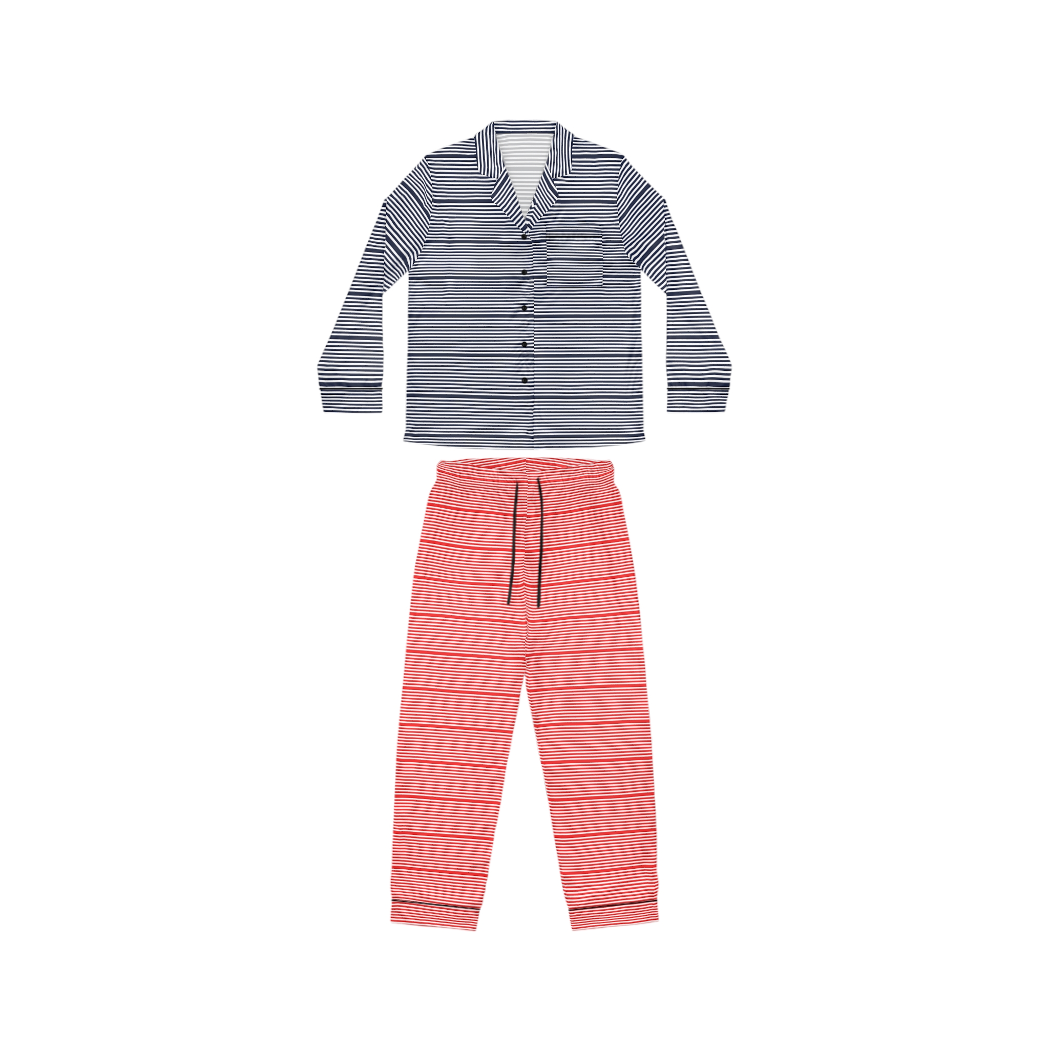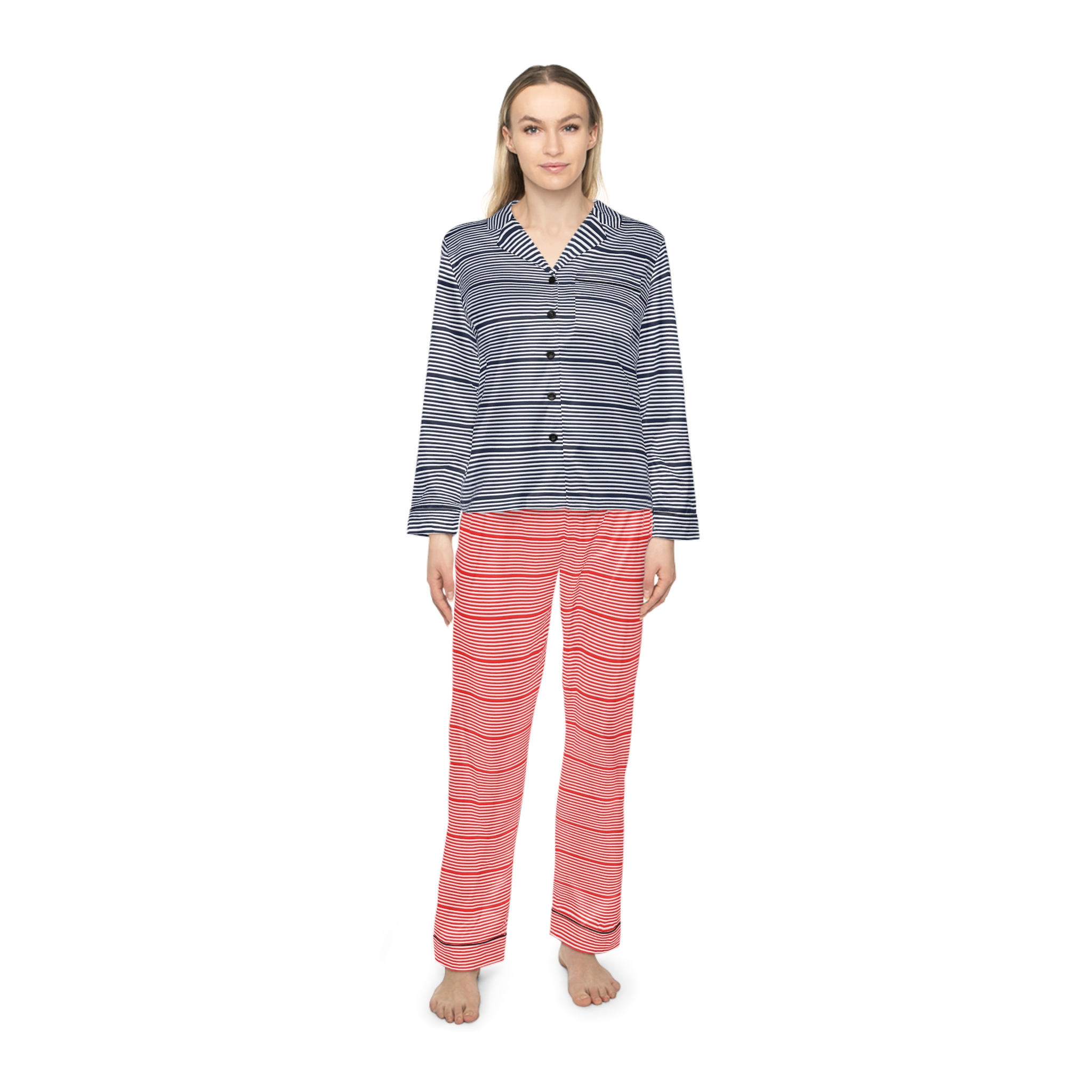 Navy and Red Striped Women’s Satin Pajamas (HLPJ0013)
