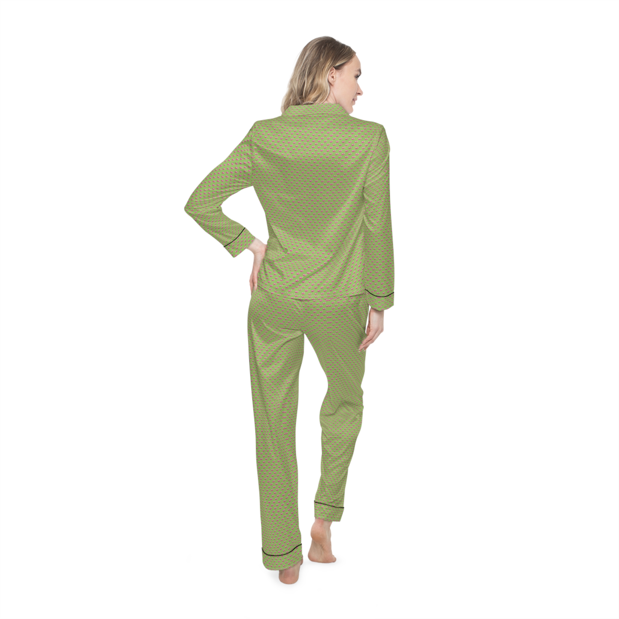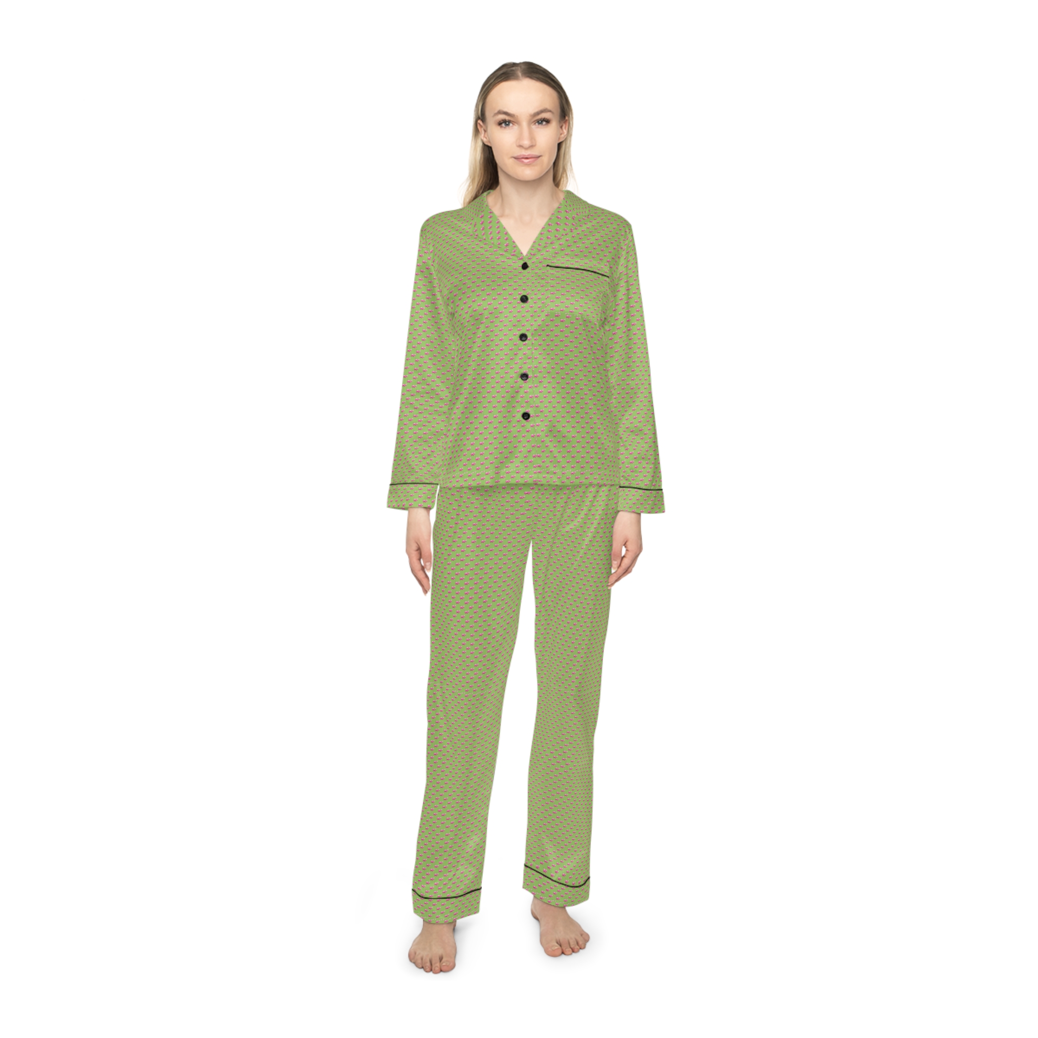 Pink and Green Elephant Women’s Satin Pajamas (hlpj0049)