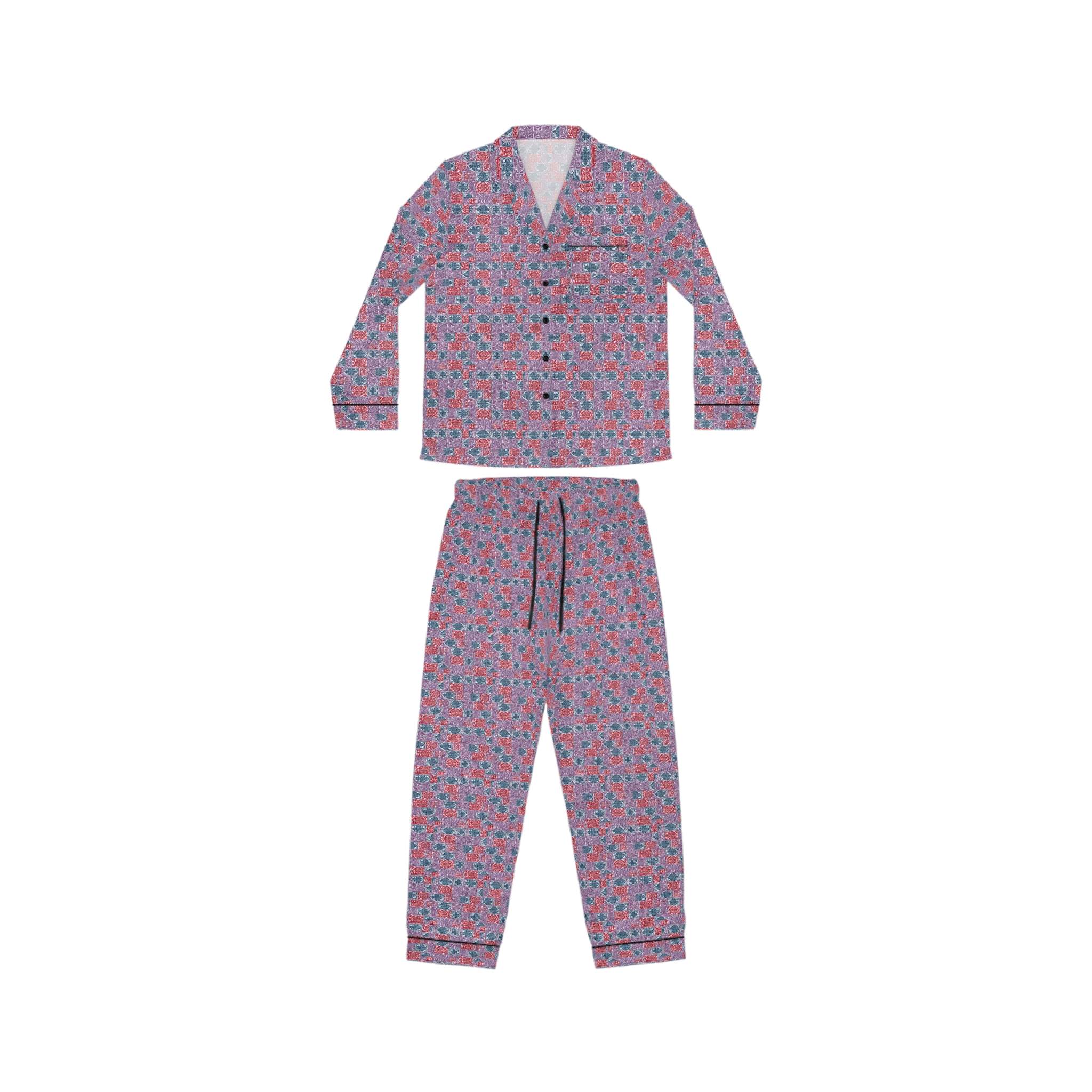 Experience unmatched comfort and elevated design with Hampton Laze designer pyjamas (also known as pajamas). Crafted from a premium satin blend of 95% polyester and 5% spandex, these limited-edition sets feel luxuriously smooth against the skin. Each set features a refined notch lapel collar, black trim details, and a drawstring waist for a tailored yet relaxed fit. Every design is exclusive to Hampton Laze — bold, timeless, and never mass-produced. Perfect for women who value originality, softness, and style, whether lounging or traveling.